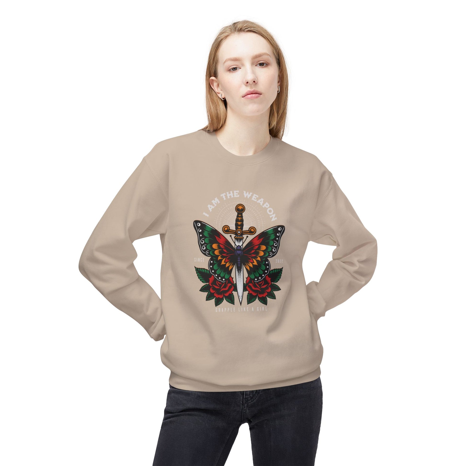 Check out this cozy crewneck sweatshirt with one of our "I am the weapon." design on the front. Perfect for the women of Brazilian Jiu Jitsu on the go to or from the gym. Great addition to you gym bag! Perfect for birthday, holiday, and everyday gifts for you jiu jitsu besties.