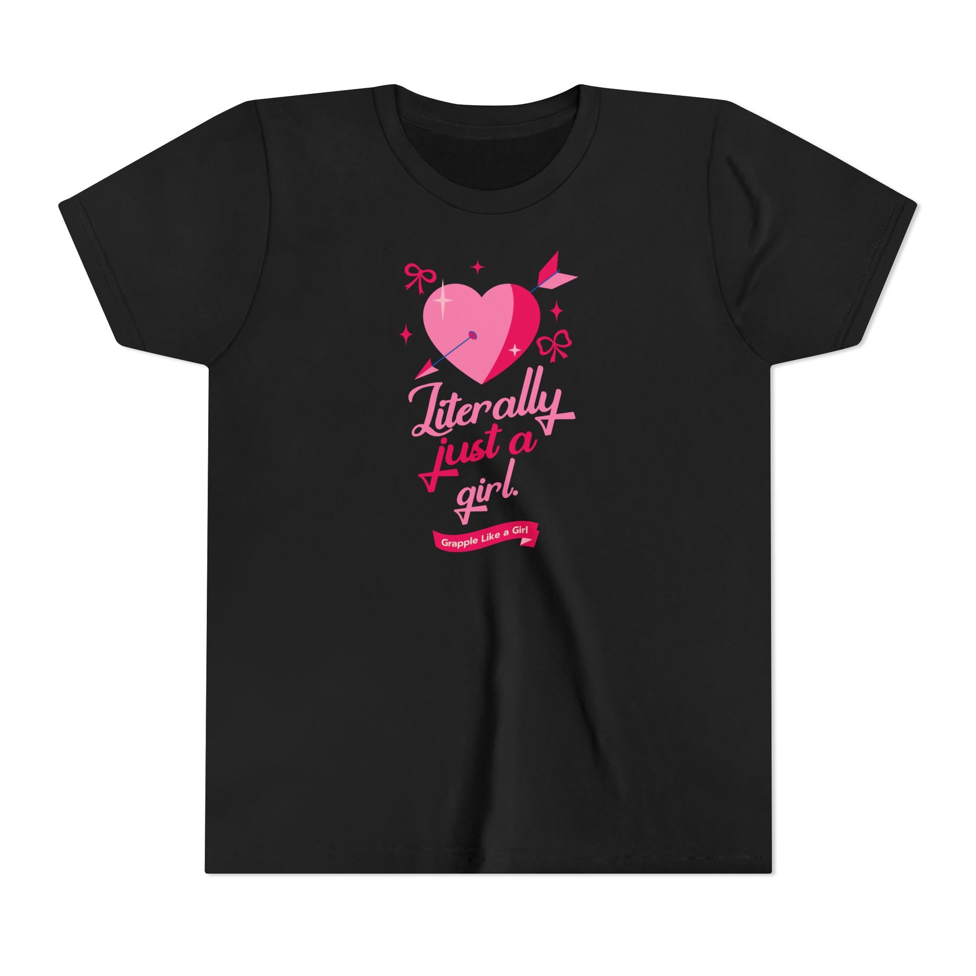 The Literally Just a Girl Youth T-Shirt is for girls in Brazilian Jiu-Jitsu who show up sweet, confident, and completely underestimated. Featuring the heart-and-arrow Literally Just a Girl design with Grapple Like a Girl beneath it, this tee blends softness and strength in a way that feels fun, empowering, and very GLG.